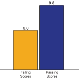 For example, in a sample of research associates at a market research firm, where research associates were required to conduct telephone-based surveys and perform data entry, there was an observed correlation of .26 between BST performance and job performance. Job performance was measured by productivity ratings compiled by management and was compared to BST scores. Individuals with failing BST scores (raw scores less than 28) had an average productivity rating of 6.0, while those with passing scores had an average productivity rating of 9.8.